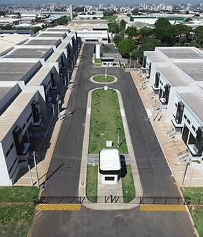 Condomínio industrial fechado em Americana/SP, galpões a partir de 1.000m², pronto para locação.